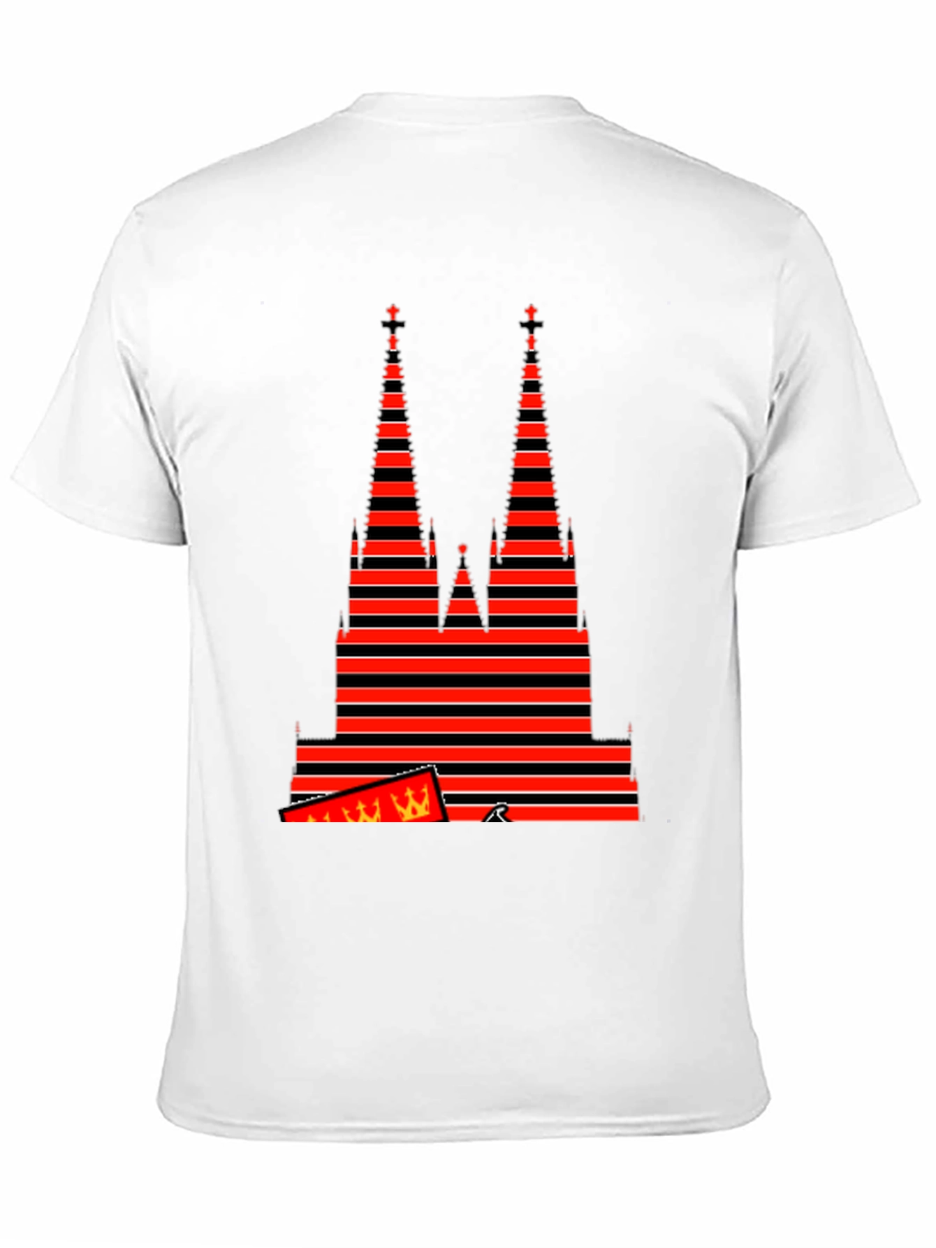 Show your love for Cologne with this unique graphic T-shirt. Featuring a bold, stylized depiction of the iconic Cologne Cathedral, this shirt is sure to turn heads. The design incorporates eye-catching red and black horizontal stripes, giving it a modern and artistic look. Made from a comfortable and breathable fabric, this T-shirt is perfect for everyday wear. Whether you're strolling through the city, attending a local event, or simply relaxing at home, this T-shirt allows you to express your passion for Cologne in style. Get yours today and celebrate this magnificent landmark!