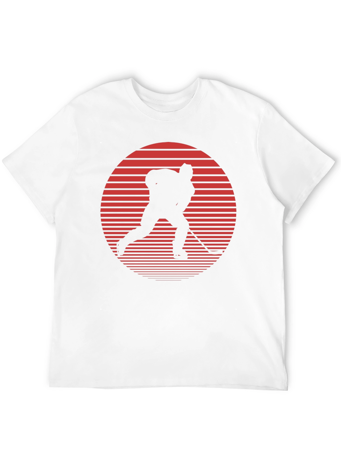 Show off your love for hockey with this cool graphic tee! The shirt features a silhouette of a hockey player set against a vibrant red, retro-inspired sun design. Made from a soft, breathable fabric, this tee is perfect for everyday wear, whether you're hitting the ice, cheering from the stands, or just hanging out with friends. The classic black color makes it easy to pair with any outfit. Get yours today and score some style points!