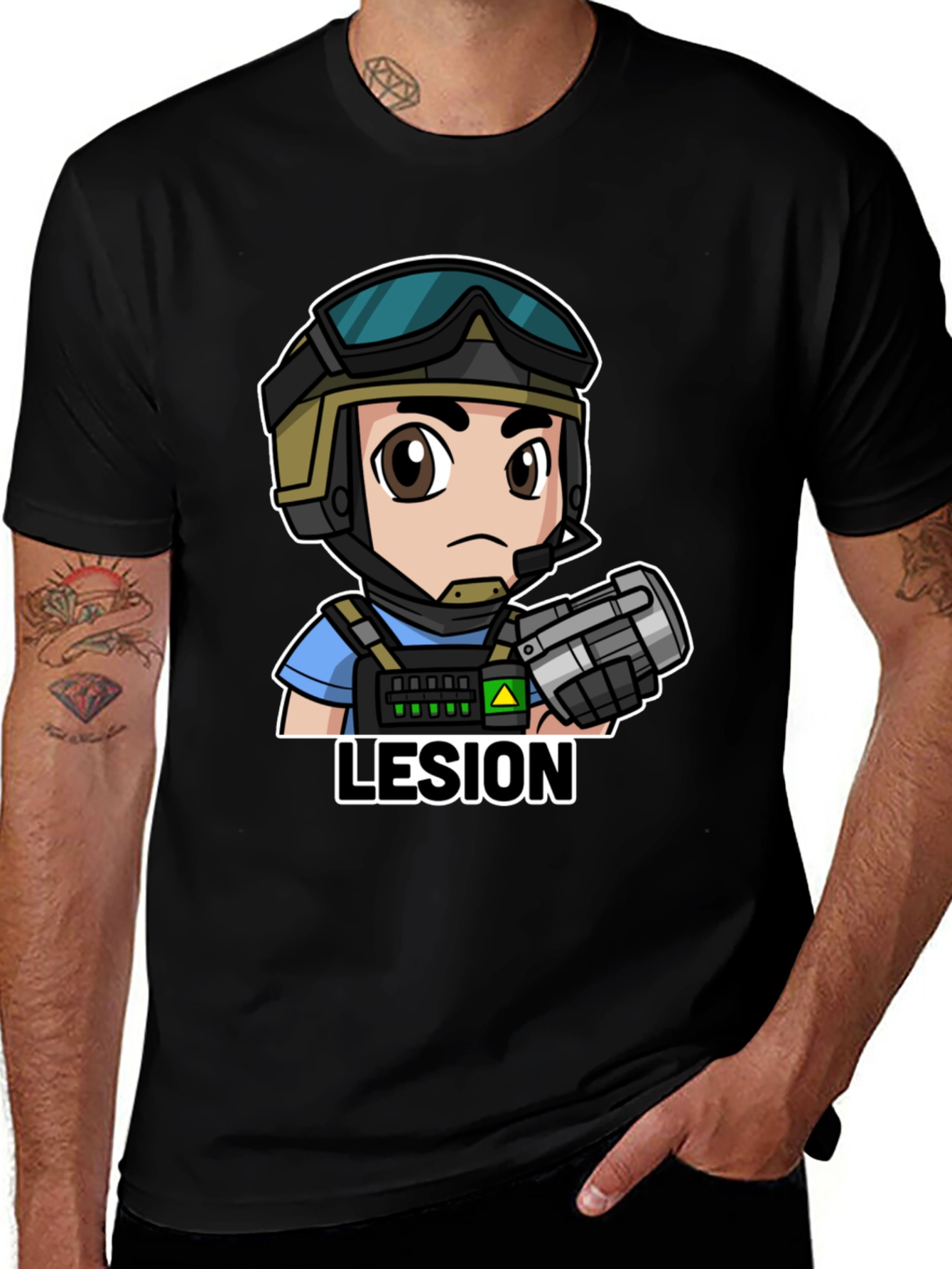 Show off your unique style with this black cotton t-shirt featuring a vibrant cartoon graphic of Lesion. The design showcases a detailed character with tactical gear, set against a clean backdrop for maximum impact. Made from comfortable, breathable cotton, this tee is perfect for everyday wear. Whether you're a gaming enthusiast or just appreciate eye-catching designs, this shirt is sure to turn heads. Pair it with jeans or shorts for a casual look, or dress it up with a jacket for a night out. Comfortable, stylish, and made to last.