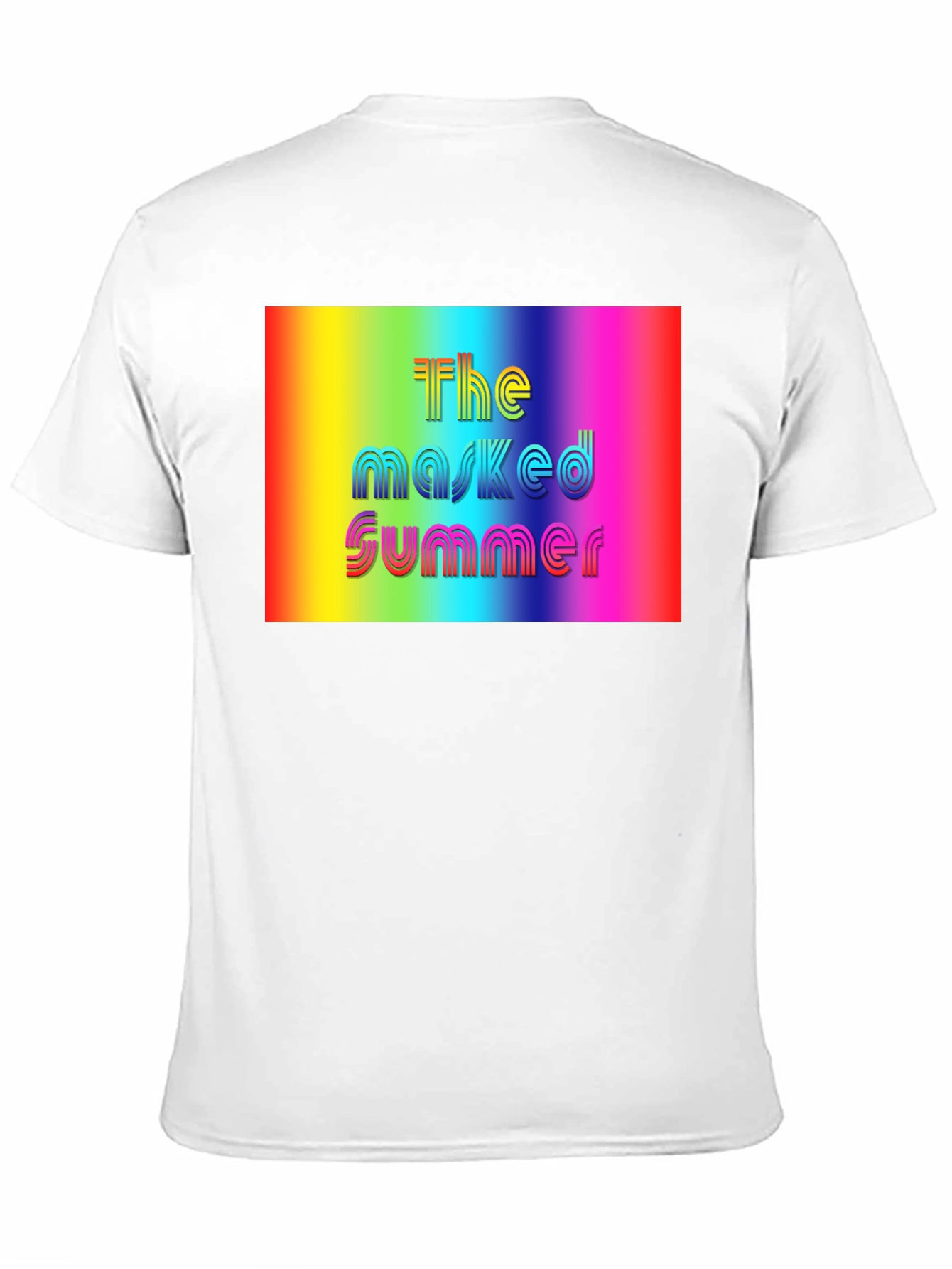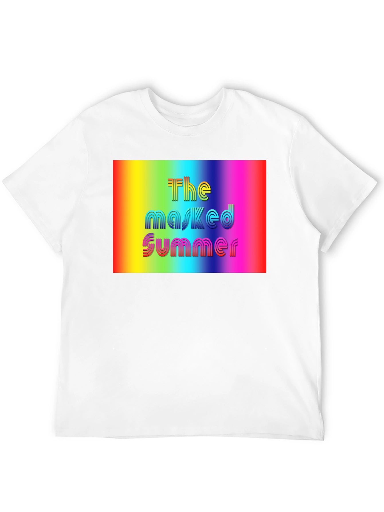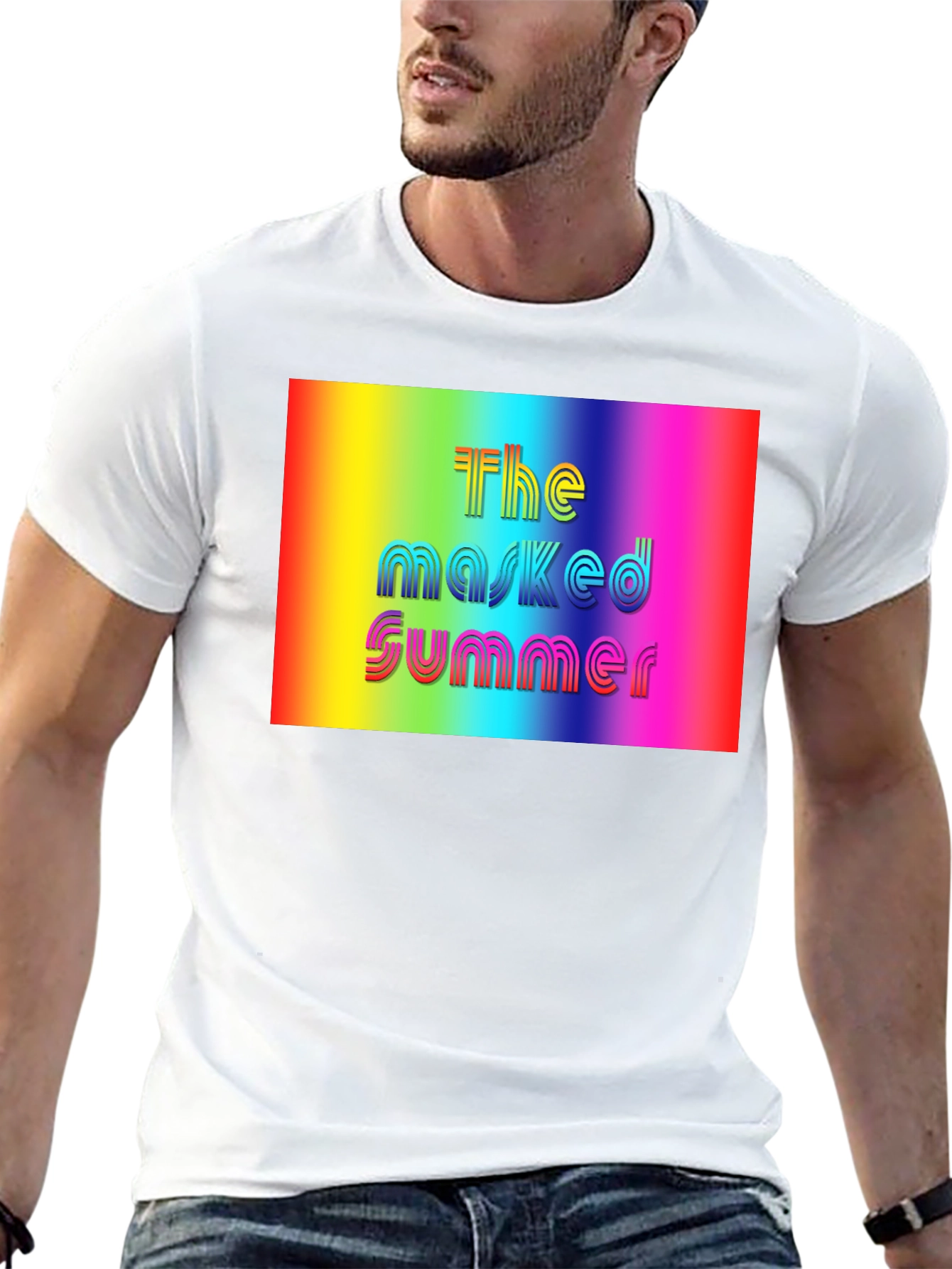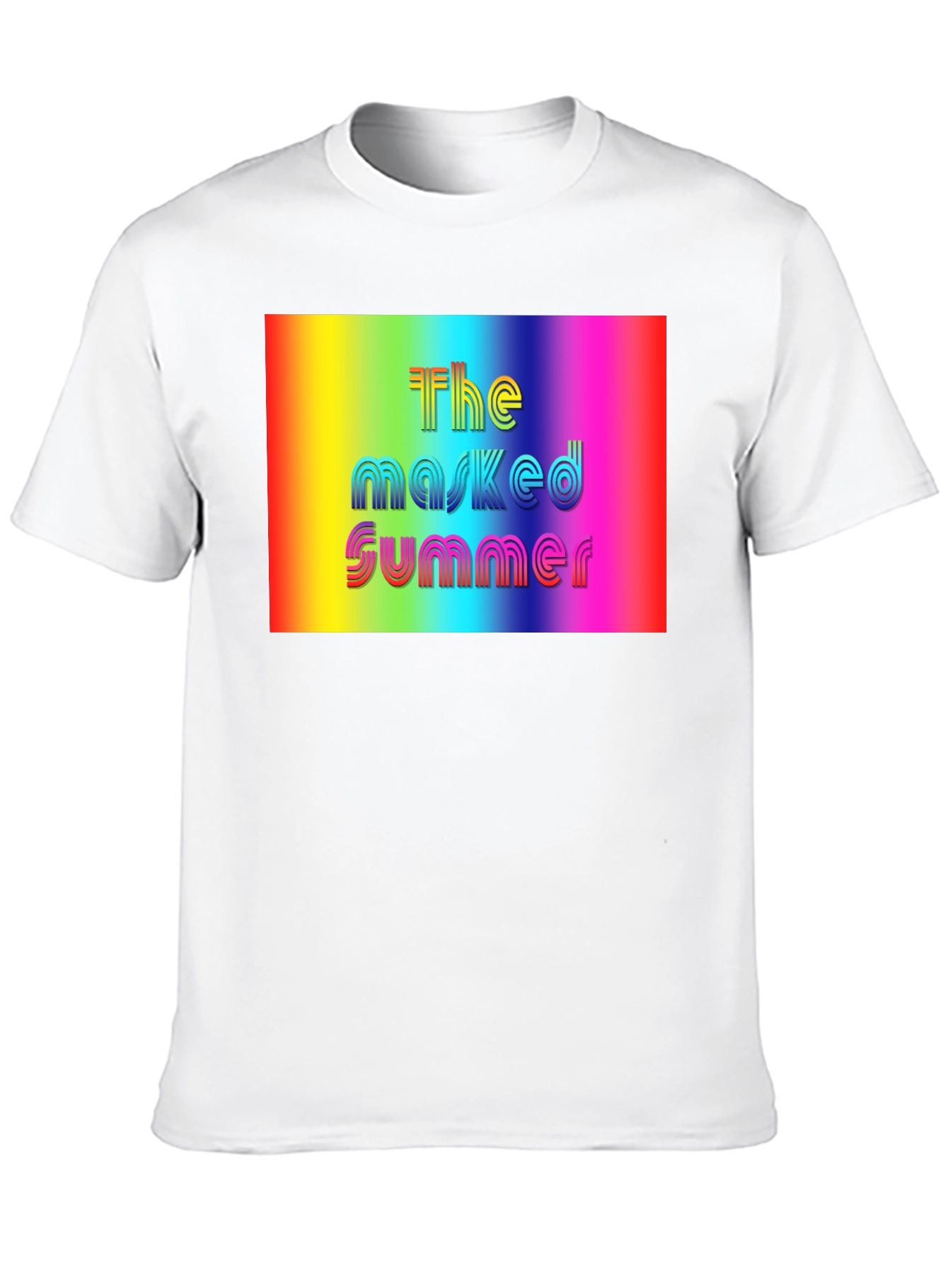 Express your vibrant style with this eye-catching graphic tee. This black t-shirt features a bold, colorful design with "The Masked Summer" text in a retro-inspired font against a rainbow background. The vivid colors and unique design make this tee a standout piece for casual wear. Made from a soft, comfortable fabric, it's perfect for everyday activities, summer outings, or expressing your individuality. Pair it with jeans, shorts, or a skirt for a cool and trendy look. Add a pop of color and personality to your wardrobe with this must-have statement tee.